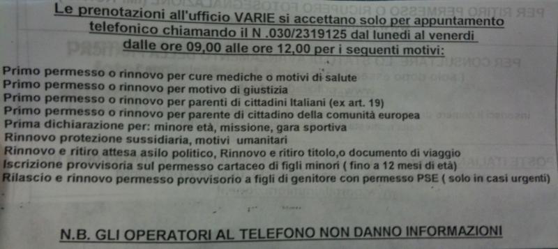 BRESCIA 地区办理需要预约,本公司提供快速办理。